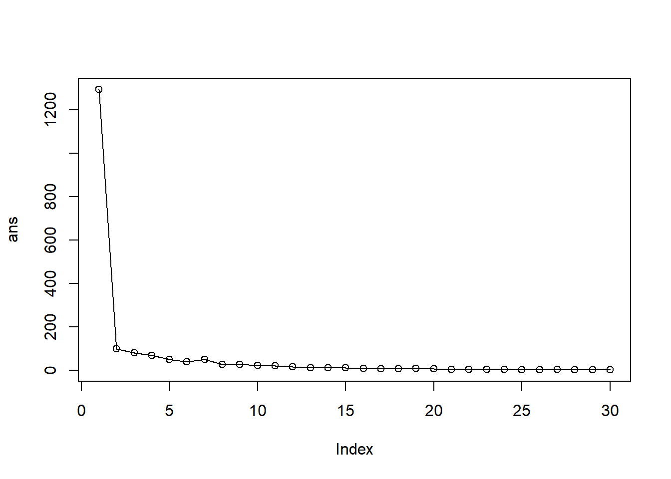 ans [1] 1292.393720 100.248889 81.280868 70.408402 51.505516 40.698183