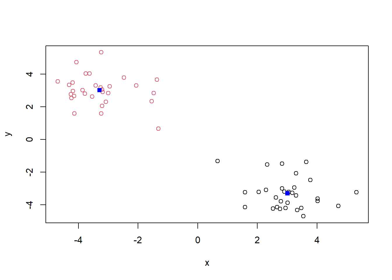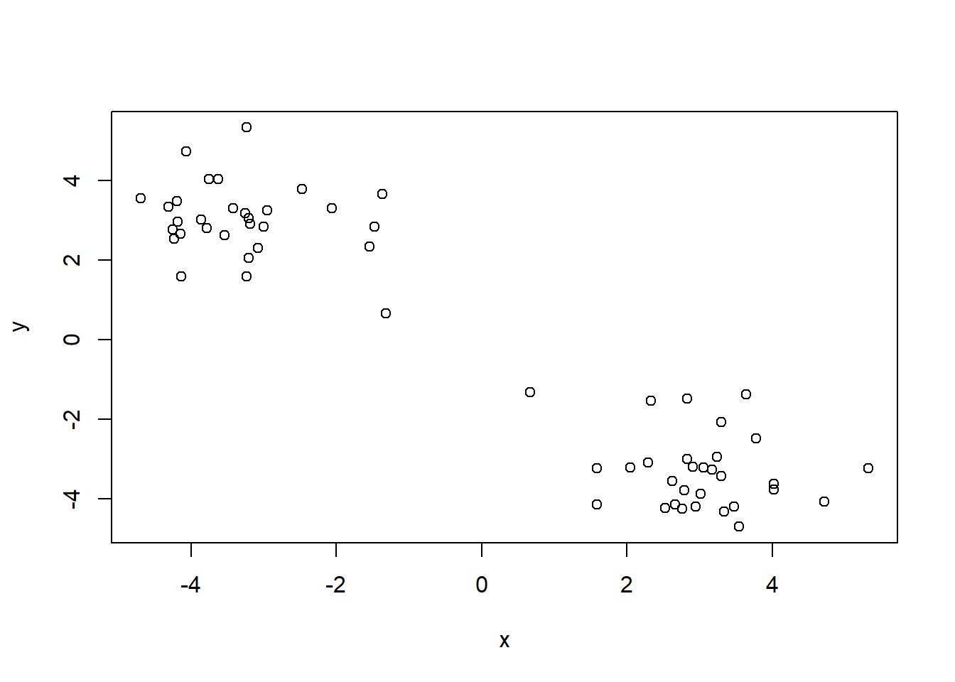 km <- kmeans(x, 2)