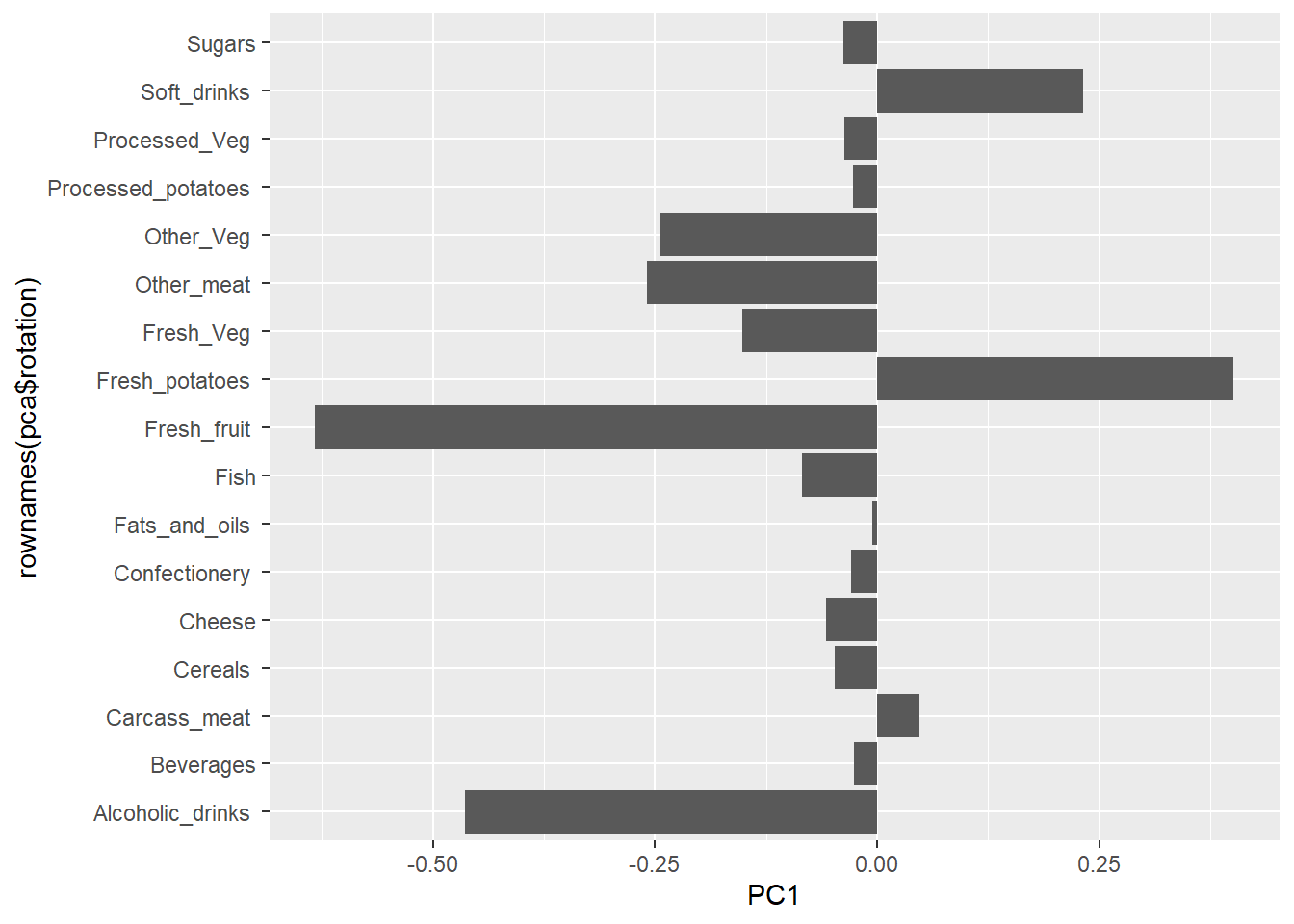 aes(PC1, rownames(pca$rotation)) +