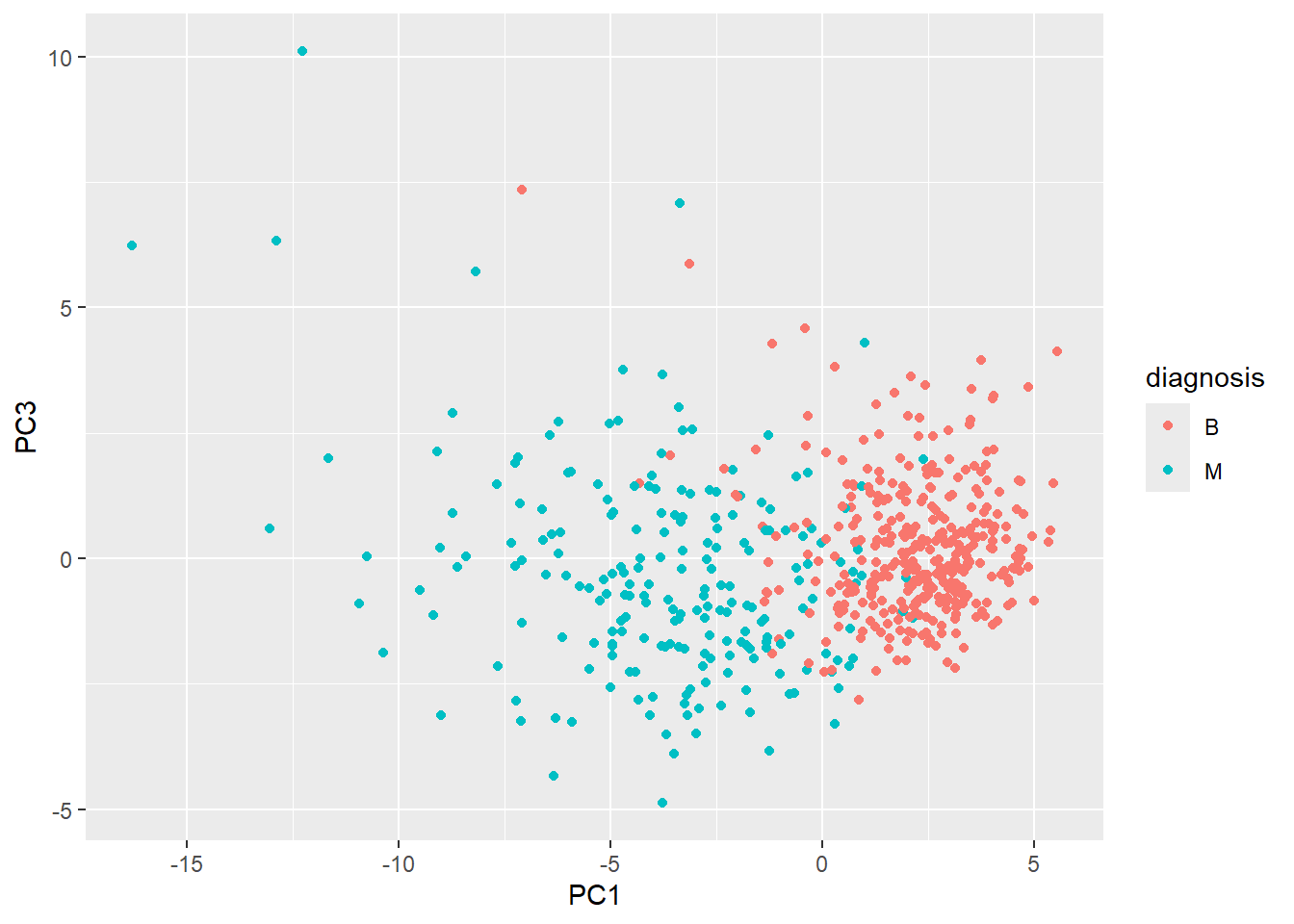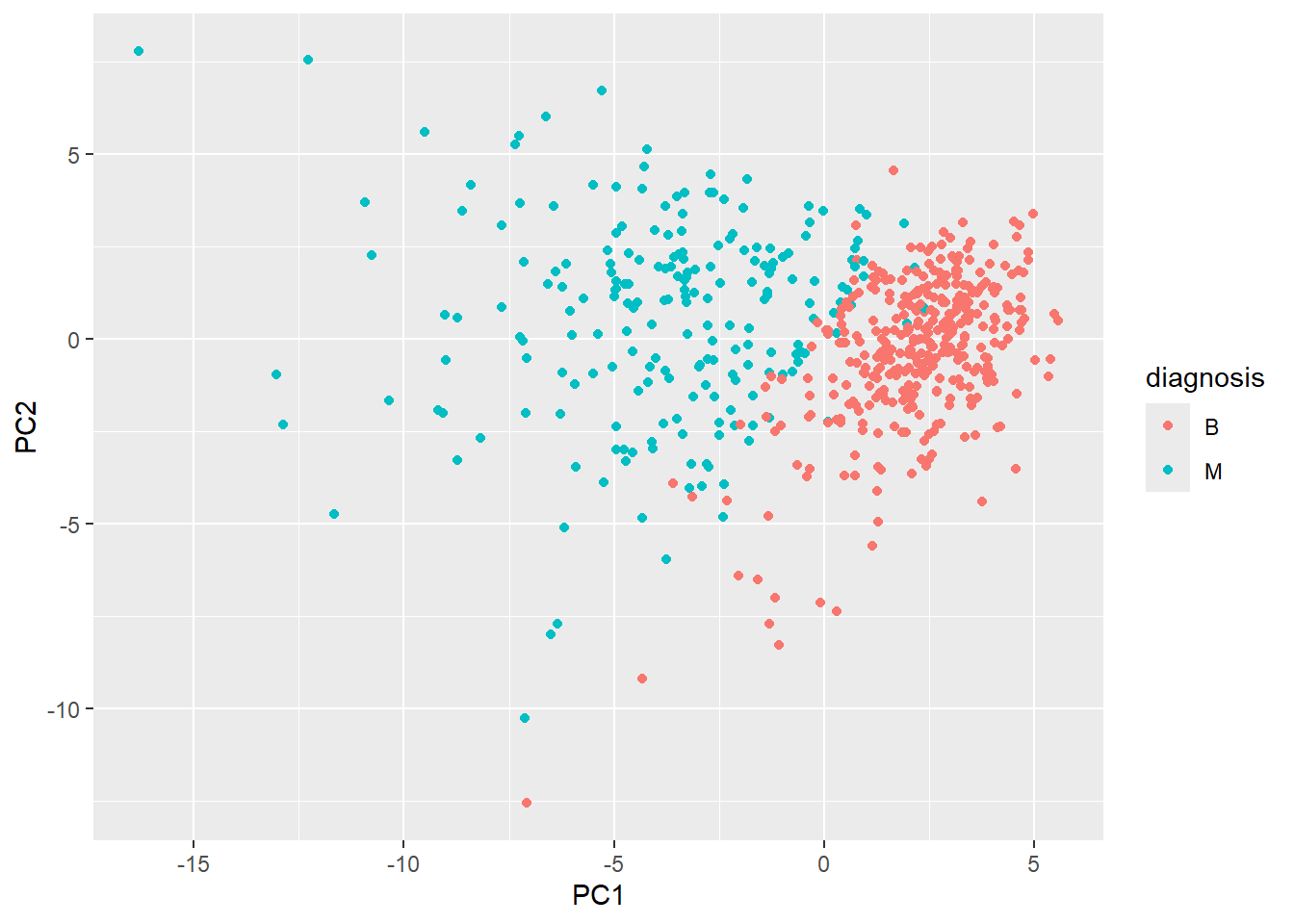 We need to remove the diagnosis column before we do any further analysis of this data set - we don’t want to pass this to PCA etc. We will save it as a separate vector that we can use later to compare our findings to those of experts.